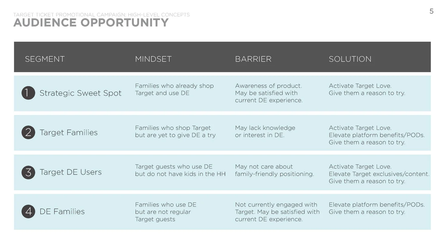 Digital streaming website and app product created for Target and tailored to its guests' wants and needs. Simple to join, easy to set up, and convenient profile controls are provided for each member of the family. Marketing targeted consumers segments who said they shop Target for entertainment and would trust Target with their family’s digital content locker.